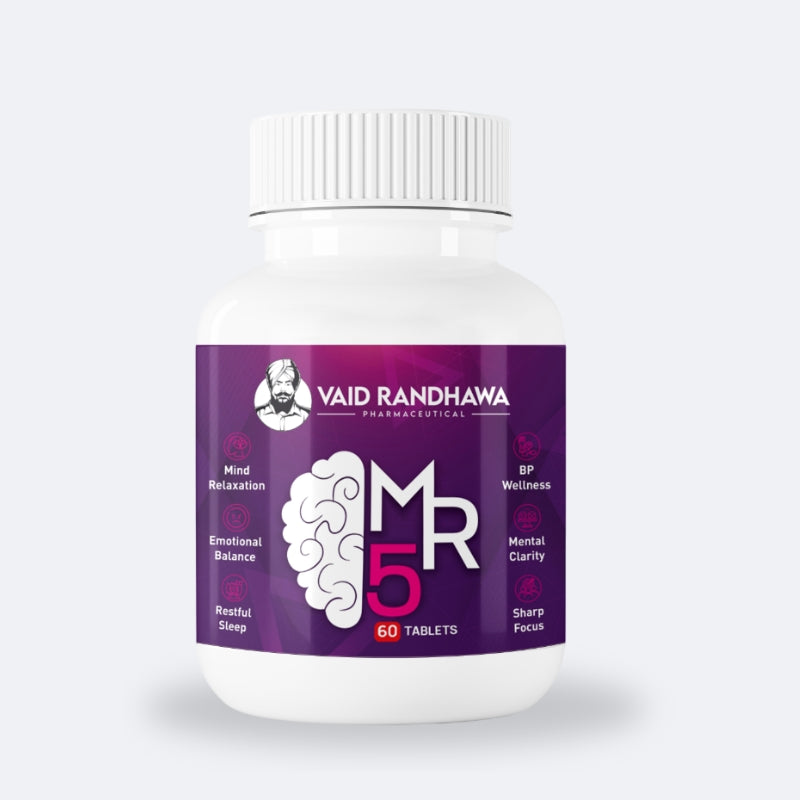 MR 5 Tablets by Vaid Randhawa are thoughtfully developed to support mind and emotional wellness. The formulation helps promote relaxation, emotional balance, and restful sleep. It also supports mental clarity, sharp focus, and contributes to overall BP wellness as part of a balanced and healthy lifestyle.