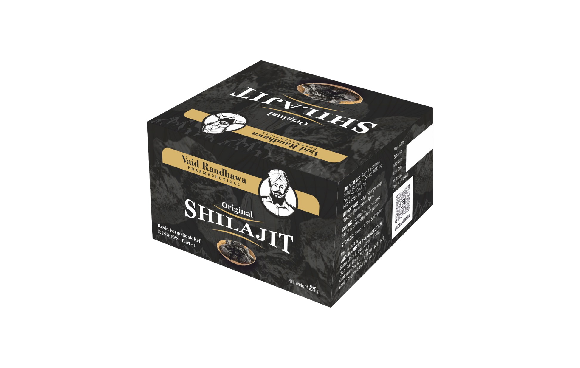 Experience the power of Pure Himalayan Shilajit by Vaid Randhawa Pharmaceutical, a 100% authentic Ayurvedic resin sourced from the pristine heights of the Himalayas.